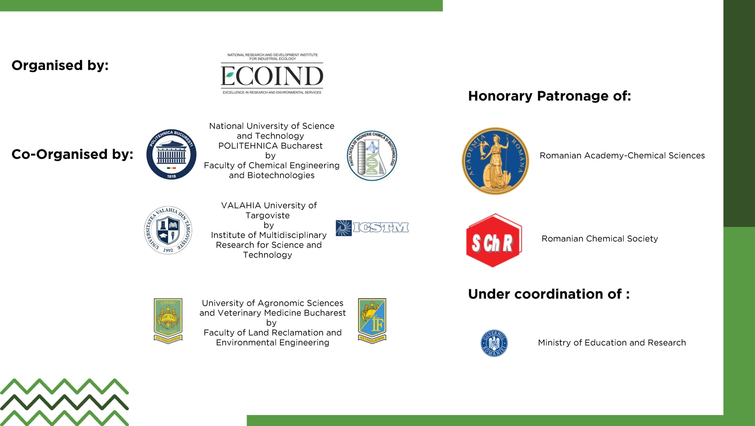 Organizing committee: Alina CONSTANTIN (alina.constantin@incdecoind.ro), Catalina STOICA (catalina.stoica@incdecoind.ro), Corina STOIAN (corina.stoian@ecoind.ro)